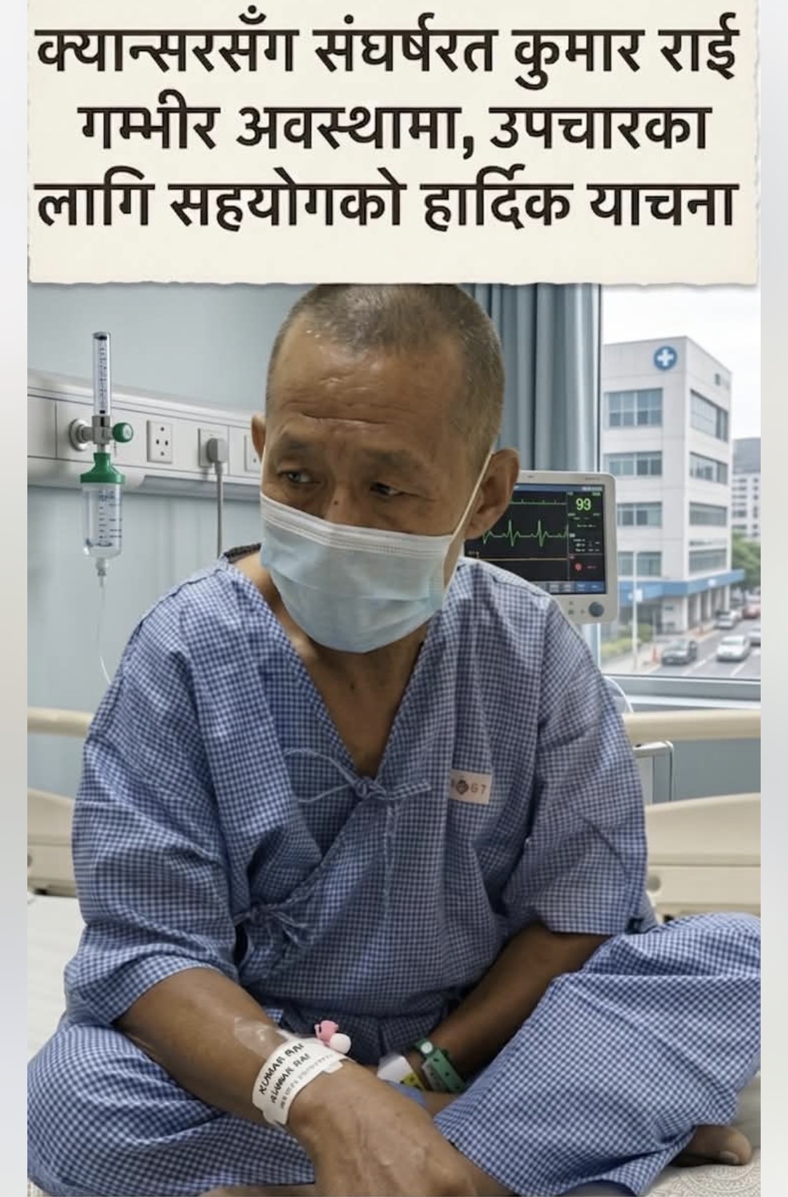 धनकुटा जिल्लाको दुर्गम क्षेत्र छिन्ताङका ४८ वर्षीय कुमार राई आज जीवन र मृत्युको कठिन मोडमा उभिन बाध्य भएका छन्। आन्द्रा र लिभर क्यान्सरजस्तो गम्भीर रोगले उहाँलाई कमजोर बनाएको छ, तर अझै पनि उहाँभित्र बाँच्ने चाहना जीवित छ—आफ्ना सन्तानसँग फेरि हाँस्ने, परिवारसँग खुसी बाँड्ने आशा अझै मरेको छैन।